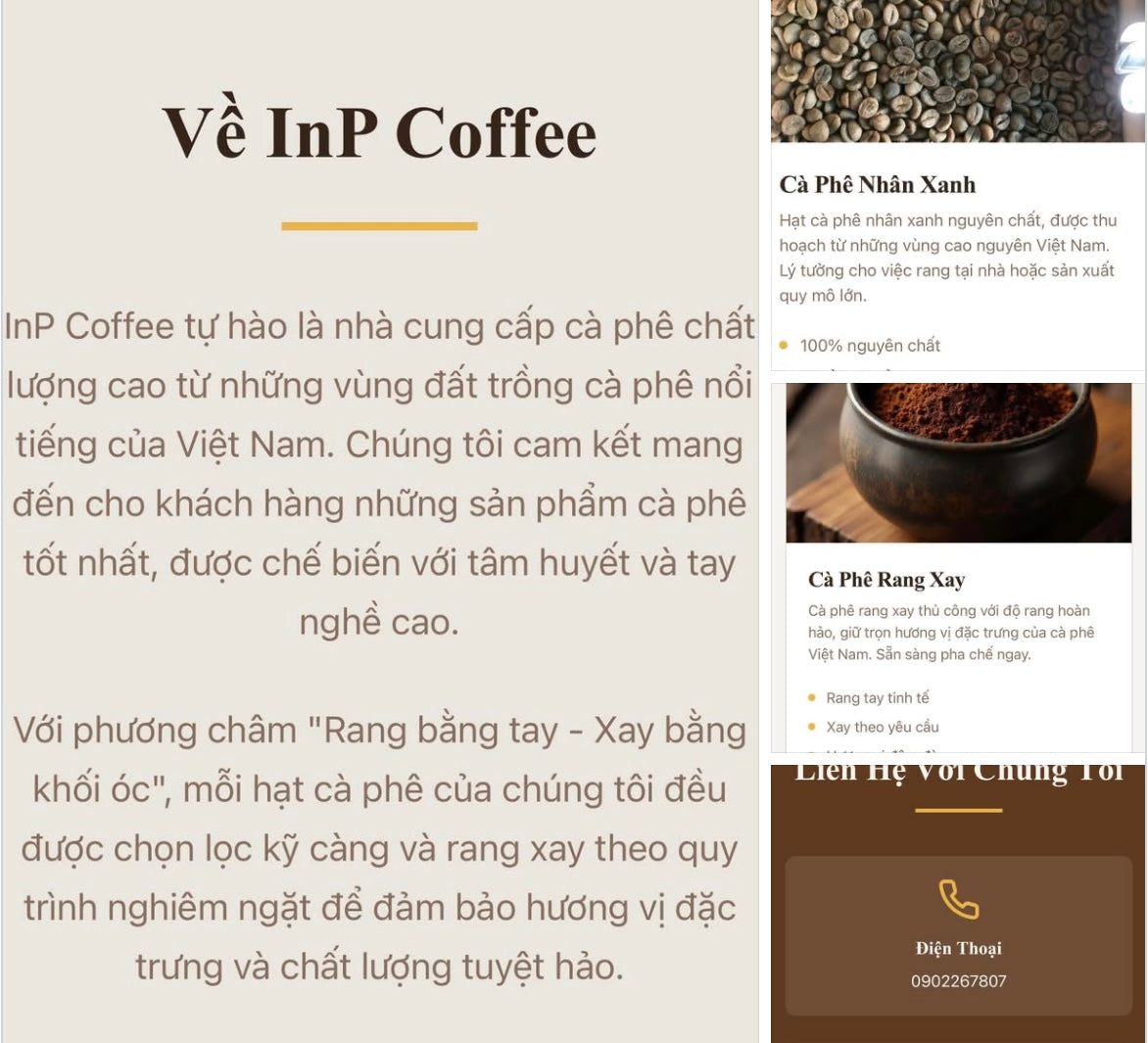 Công ty InP Coffee được thành lập từ năm 2025, chuyên sản xuất cà phê nhân xanh và cà phê hạt rang Robusta, Arabica . InP coffee cung cấp các loại cà phê phổ biến nhất được trồng tại các vùng sản xuất nổi tiếng của Việt Nam.